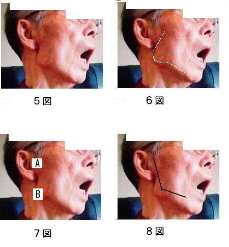 上図から上顎骨のB地点に突起がありますので、下顎頭あるいは下顎頭が深部に入り込んで下顎骨のどこかがB地点の下で上顎骨にぶつかって上部に出ることができないのではと考えて、次のような手順でB地点の下に潜り込んでしまった下顎骨を上部に出すことにしました。。